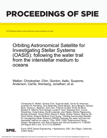 | Title: | Orbiting Astronomical Satellite for Investigating Stellar Systems (OASIS): following the water trail from the interstellar medium to oceans |
