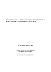 Title: | Characterisation of Immune Thrombotic Thrombocytopenic Purpura utilising deep phenotyping and genotyping via genome wide association study |