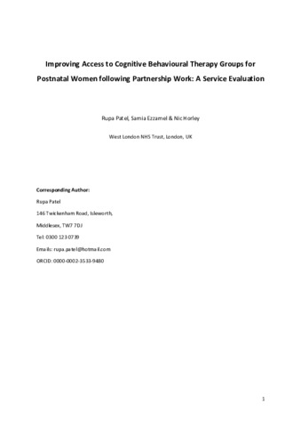 Improving access to cognitive behavioural therapy groups for postnatal women following partnership work: a service evaluation.