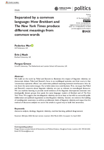 Title: | Separated by a common language: How Breitbart and The New York Times produce different meanings from common words |