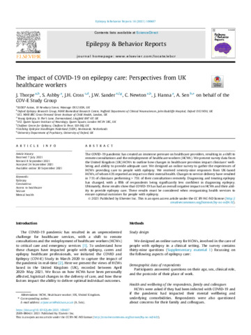 The impact of COVID-19 on epilepsy care: Perspectives from UK healthcare workers.