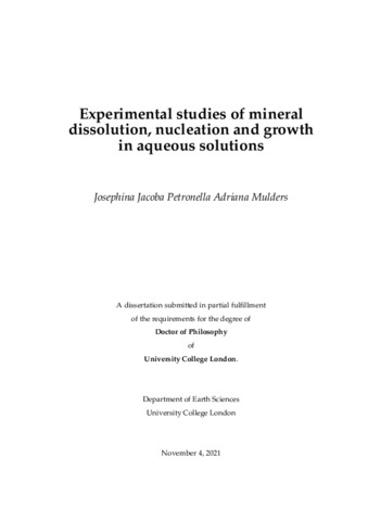 Title: | Experimental studies of mineral dissolution, nucleation and growth in aqueous solutions |