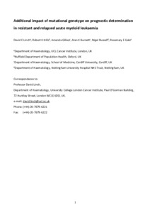 | Title: | Additional impact of mutational genotype on prognostic determination in resistant and relapsed acute myeloid leukaemia |