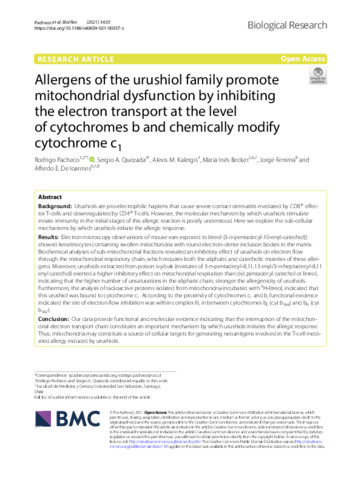 Title: | Allergens of the urushiol family promote mitochondrial dysfunction by inhibiting the electron transport at the level of cytochromes b and chemically modify cytochrome c1 |