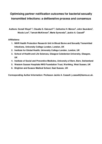 Title: | Optimising partner notification outcomes for bacterial sexually transmitted infections: a deliberative process and consensus |