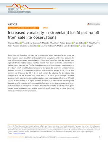 Title: | Increased variability in Greenland Ice Sheet runoff from satellite observations |