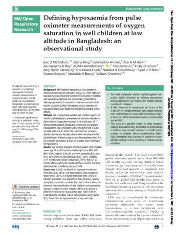 Defining hypoxaemia from pulse oximeter measurements of oxygen saturation in well children at low altitude in Bangladesh: an observational study.