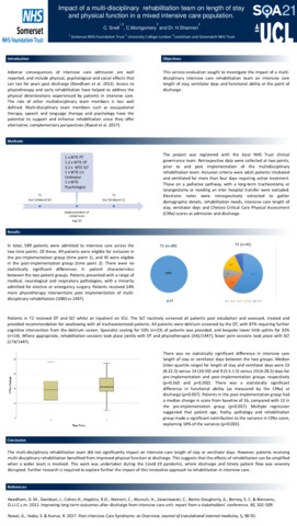 Impact of a multi-disciplinary rehabilitation team on length of stay and physical function in a mixed intensive care population.