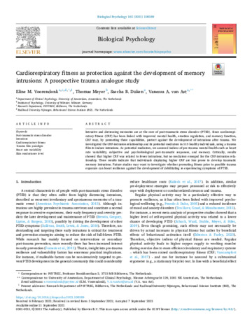 Title: | Cardiorespiratory fitness as protection against the development of memory intrusions: A prospective trauma analogue study |