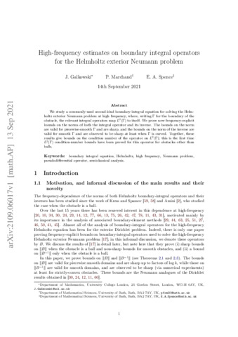 Title: | High-frequency estimates on boundary integral operators for the Helmholtz exterior Neumann problem |