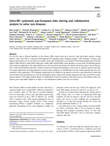 | Title: | Solve-RD: systematic pan-European data sharing and collaborative analysis to solve rare diseases |
