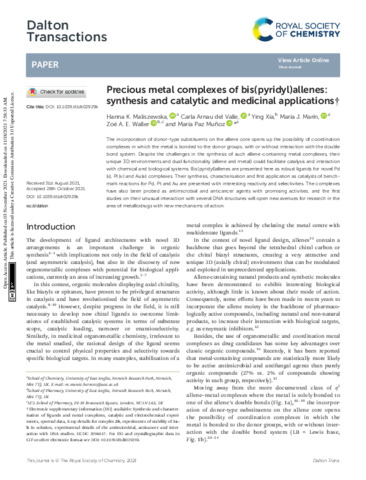 Precious metal complexes of bis(pyridyl)allenes: synthesis and catalytic and medicinal applications.