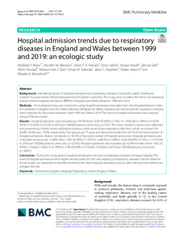 Title: | Hospital admission trends due to respiratory diseases in England and Wales between 1999 and 2019: an ecologic study |