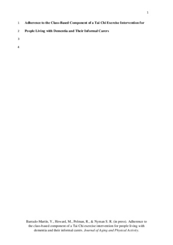 | Title: | Adherence to the Class-Based Component of a Tai Chi Exercise Intervention for People Living With Dementia and Their Informal Carers |