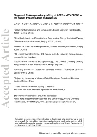 Single-cell RNA expression profiling of SARS-CoV-2-related ACE2 and TMPRSS2 in human trophectoderm and placenta.pdf - Published Version Download (4MB) | Preview |