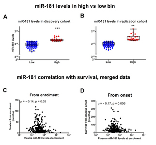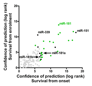Circulating miR-181 is a prognostic biomarker for amyotrophic lateral sclerosis.