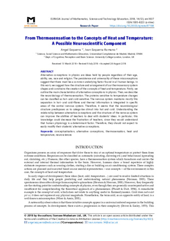 Title: | From Thermosensation to the Concepts of Heat and Temperature: A Possible Neuroscientific Component |