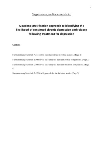 A Patient Stratification Approach to Identifying the Likelihood of Continued Chronic Depression and Relapse Following Treatment for Depression.