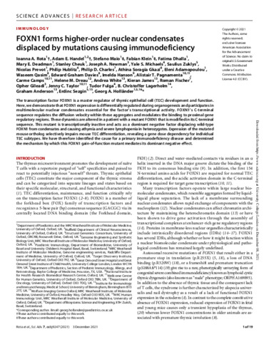 Title: | FOXN1 forms higher-order nuclear condensates displaced by mutations causing immunodeficiency |