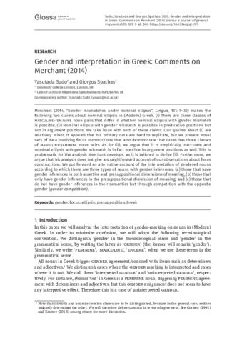 | Title: | Gender and interpretation in Greek: Comments on Merchant (2014) |