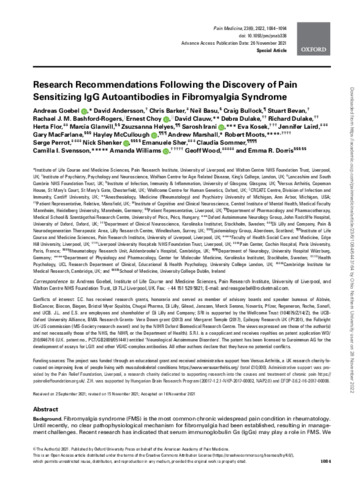 Title: | Research Recommendations Following the Discovery of Pain Sensitizing IgG Autoantibodies in Fibromyalgia Syndrome |