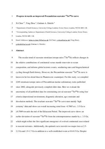 Title: | Progress towards an improved Precambrian seawater 87Sr/86Sr curve |