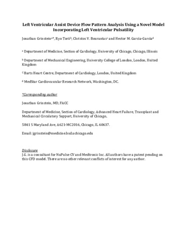Title: | Left Ventricular Assist Device Flow Pattern Analysis Using a Novel Model Incorporating Left Ventricular Pulsatility |