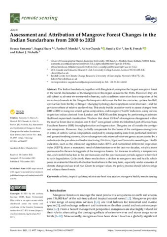 Assessment and attribution of mangrove forest changes in the indian sundarbans from 2000 to 2020.