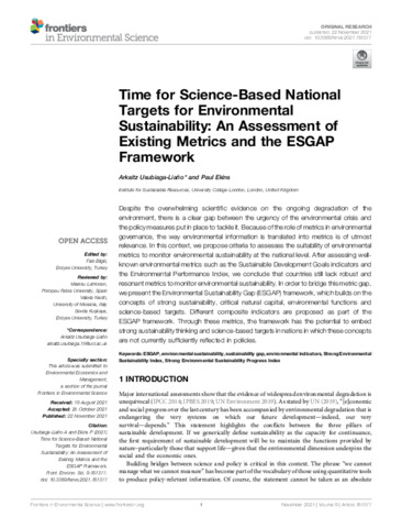 Title: | Time for Science-Based National Targets for Environmental Sustainability: An Assessment of Existing Metrics and the ESGAP Framework |