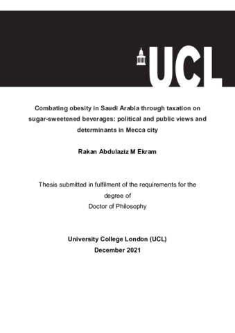 | Title: | Combating obesity in Saudi Arabia through taxation on sugar-sweetened beverages: political and public views and determinants in Mecca city |