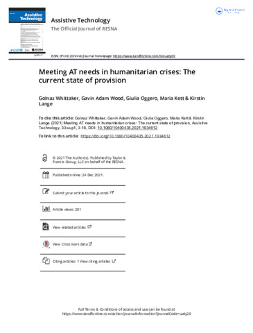 Title: | Meeting AT needs in humanitarian crises: The current state of provision |