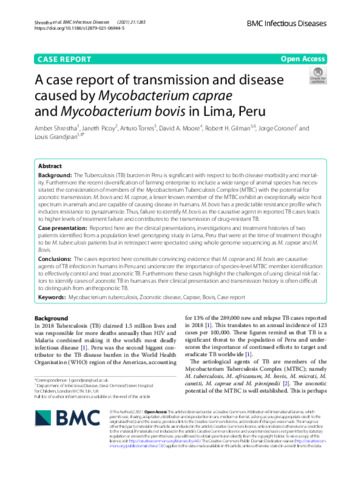 Title: | A case report of transmission and disease caused by Mycobacterium caprae and Mycobacterium bovis in Lima, Peru |