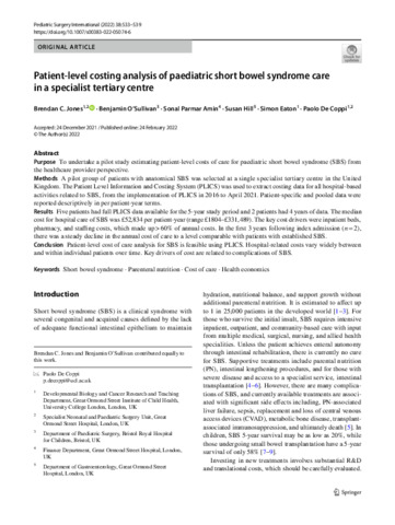 Title: | Patient level costing analysis of paediatric short bowel syndrome care in a specialist tertiary centre |