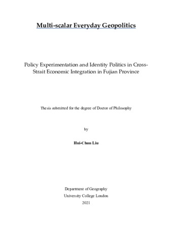 Title: | Multi-scalar everyday geopolitics: Policy experimentation and identity politics in cross-Strait economic integration in Fujian Province |