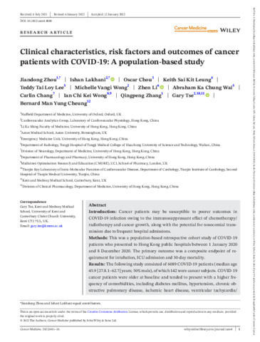 Wong_Cancer Medicine - 2022 - Zhou - Clinical characteristics risk factors and outcomes of cancer patients with COVID‐19 A.pdf Download (788kB) | Preview |