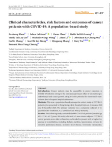 Title: | Clinical characteristics, risk factors and outcomes of cancer patients with COVID-19: a population-based study |