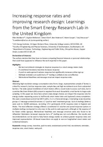 | Title: | Increasing response rates and improving research design: Learnings from the Smart Energy Research Lab in the United Kingdom |