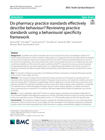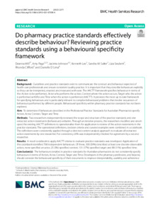 Title: | Do pharmacy practice standards effectively describe behaviour? Reviewing practice standards using a behavioural specificity framework |