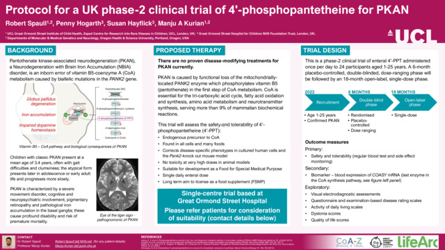 Title: | Development of a UK phase-2 clinical trial of 4'-phosphopantetheine for pantothenate kinase associated neurodegeneration |