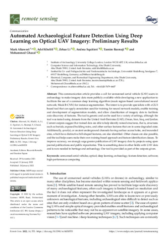 Title: | Automated Archaeological Feature Detection Using Deep Learning on Optical UAV Imagery: Preliminary Results |