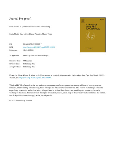 Keywords: | Synthetic inference rules, Polarities, Focusing, Axioms, Classical logic, Intuitionistic logic, Modal logics |