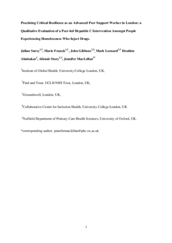 Practising critical resilience as an advanced peer support worker in London: A qualitative evaluation of a peer-led hepatitis C intervention amongst people experiencing homelessness who inject drugs.