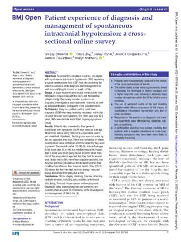 Title: | Patient experience of diagnosis and management of spontaneous intracranial hypotension: a cross-sectional online survey |