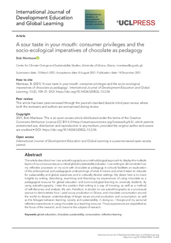 | Title: | A sour taste in your mouth: consumer privileges and the socio-ecological imperatives of chocolate as pedagogy |