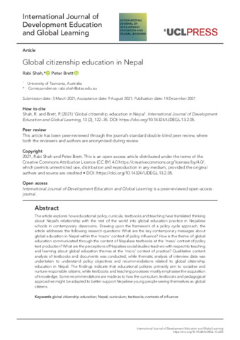 | Keywords: | global citizenship education, Nepal, curriculum, textbooks, contexts of influence |