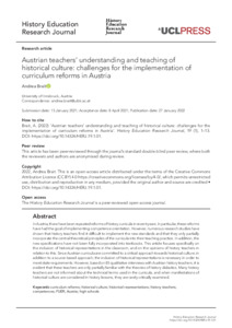 Title: | Austrian teachers’ understanding and teaching of historical culture: challenges for the implementation of curriculum reforms in Austria |