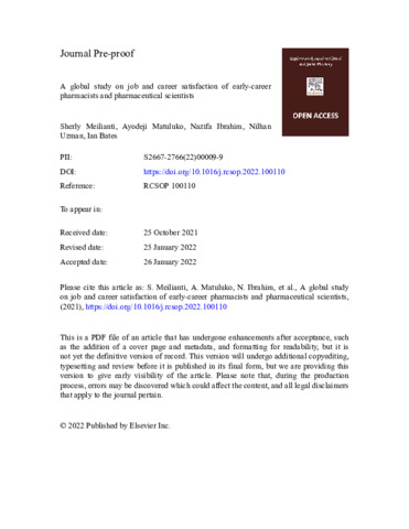 Title: | A global study on job and career satisfaction of early-career pharmacists and pharmaceutical scientists |
