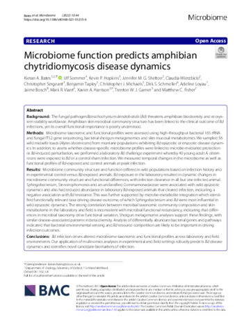 | Title: | Microbiome function predicts amphibian chytridiomycosis disease dynamics |