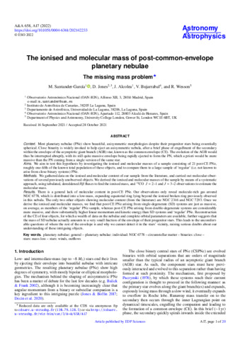 Title: | The ionised and molecular mass of post-common-envelope planetary nebulae: The missing mass problem |