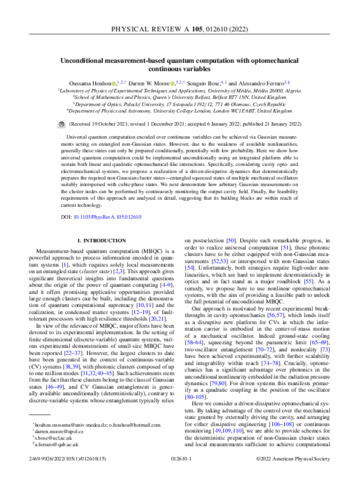 Keywords: | Optomechanics, Quantum computation, Quantum information processing with continuous variables, Quantum optics |